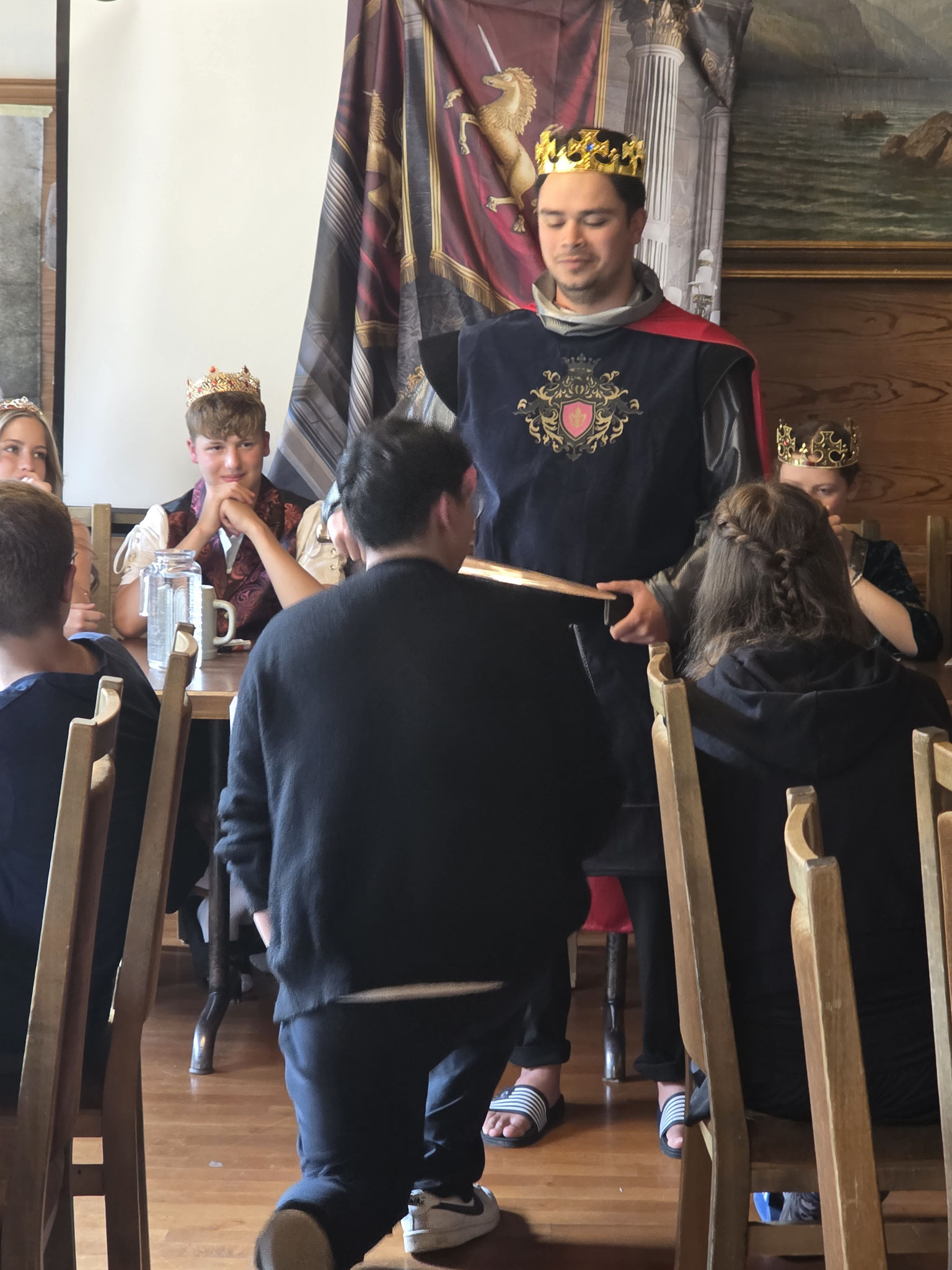 Am Abend erwartete uns ein festliches Bankett, das wie eine königliche Grillplatte angerichtet war. Nach dem Essen wurden die Kinder feierlich und höchstpersönlich von König Löwenherz zum Ritter geschlagen.