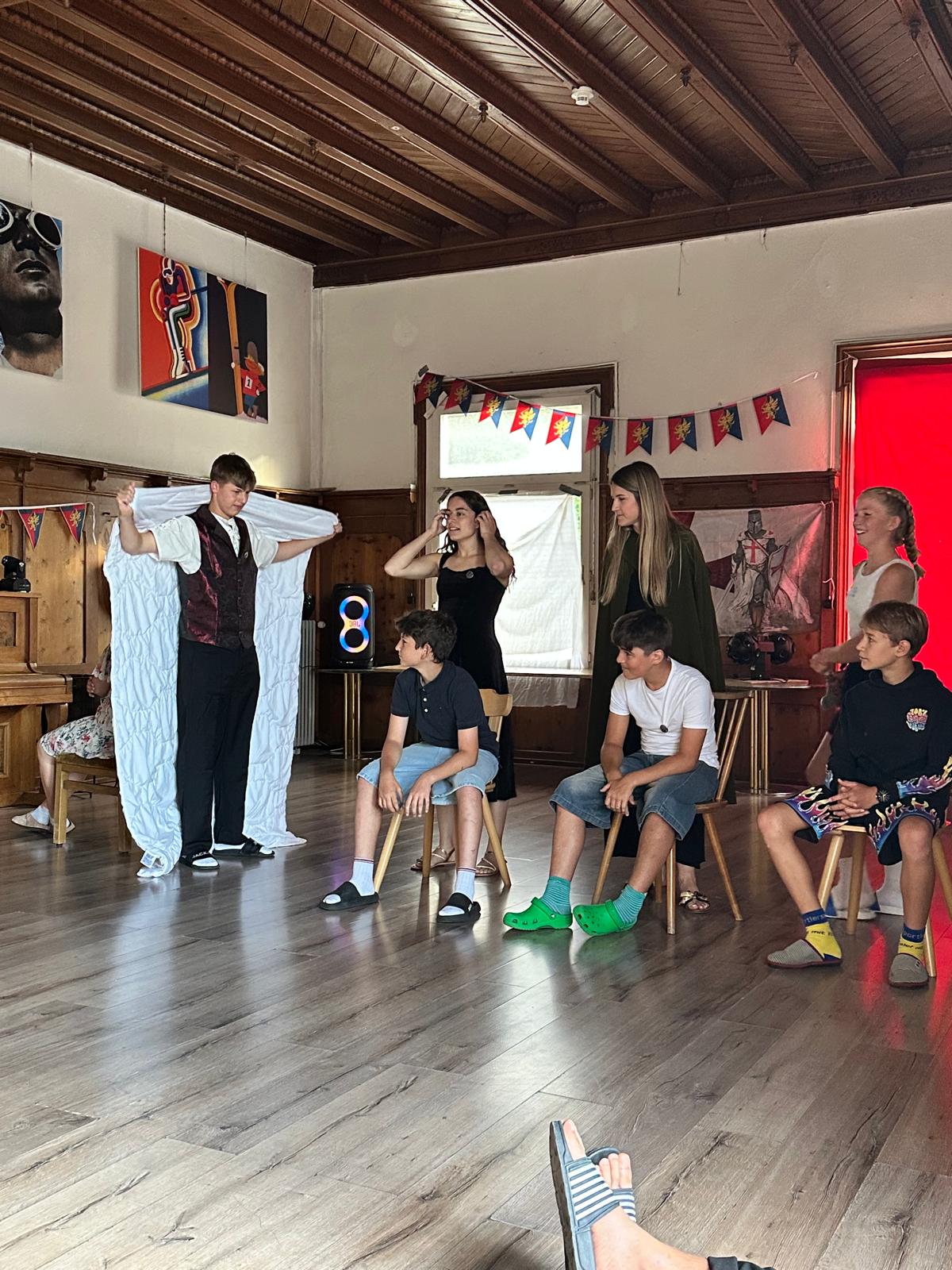 Am Lager-Montag fand unser spannender Interessentag statt. Am Morgen konnten die Kinder an verschiedenen Aktivitäten teilnehmen: Sie durften Specksteine schleifen, Bogen und Pfeile schnitzen, Kronen und Schwerter basteln und sogar einen mittelalterlichen Tanz einstudieren.